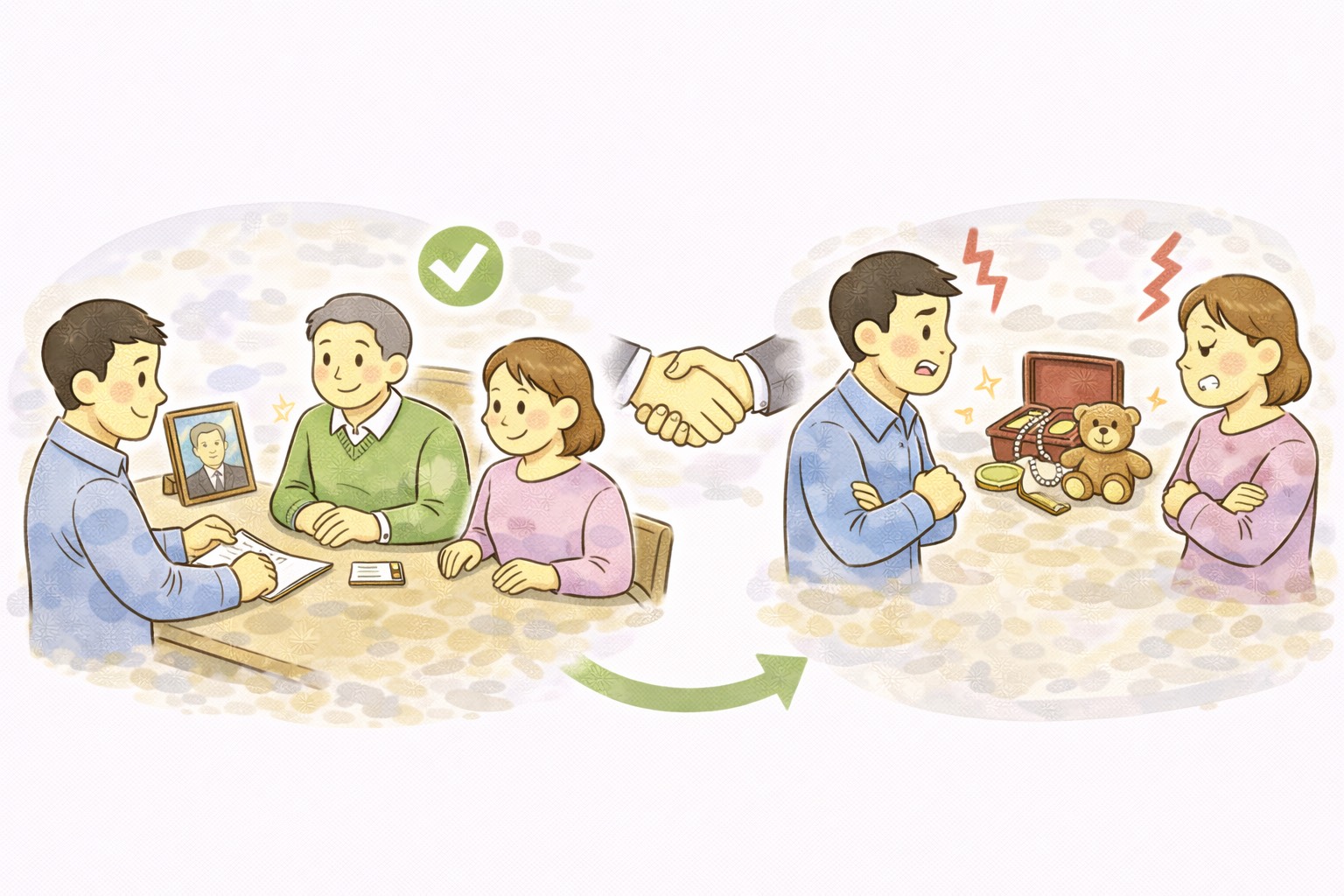 遺品は、相続が開始された瞬間から、共同相続人全員の共有財産となります。たとえ依頼主が長男で、「自分が実家を継ぐから、片付けも自分が決める」と言い張ったとしても、他の兄弟(法定相続人)の同意なく処分を進めることは、他人の財産を勝手に捨てたことと同義になりかねません。