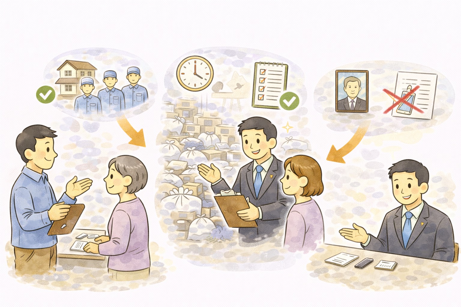 遺品整理の現場は時に過酷で、予想外の出来事の連続です。だからこそ、最初の入り口である「契約」において、起こりうるリスクをすべてテーブルの上に出し、お互いの理解を深めておくことが、円満な相続への最短ルートなのです。