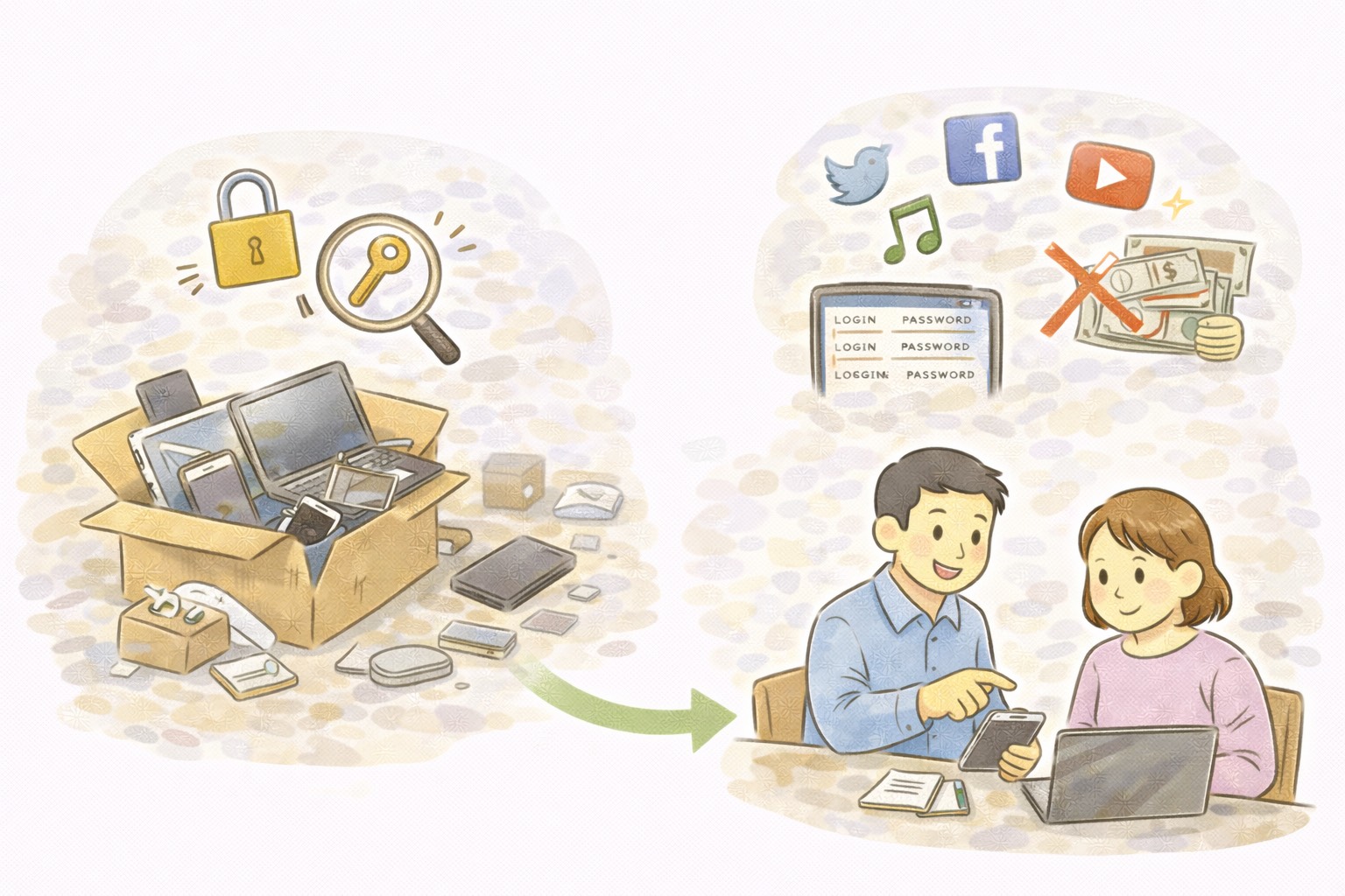 故人が利用していたSNSアカウントや、月額制のサービス(サブスク)の解約事務も、現代の遺品整理には含まれます。