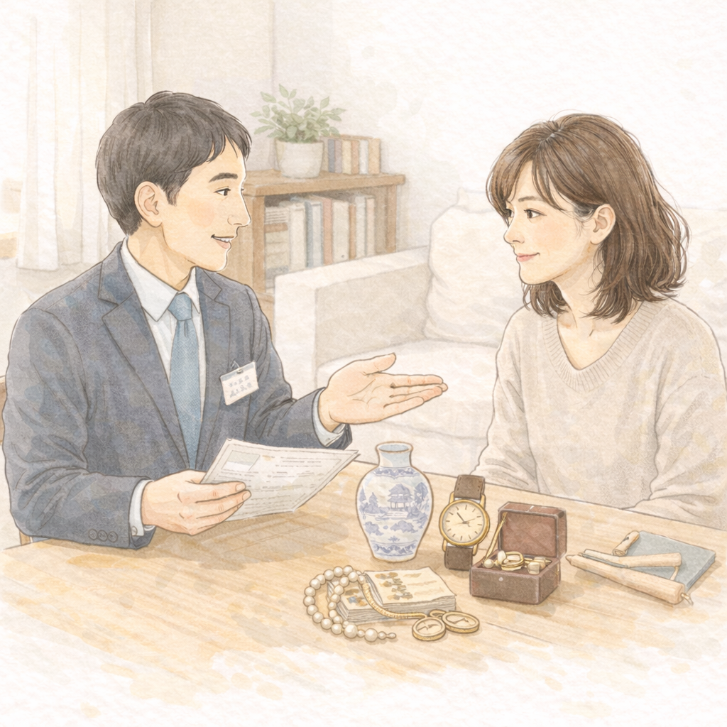 出張買取サービスは、業者が自宅まで来て遺品の査定や買取を行うサービスです。特に、多くの品物を抱える遺品整理では、重い荷物を運ぶ必要がなく便利です。また、生前整理として利用すれば、時間に余裕を持ちながら大切な品物の価値を見極めることができます。出張買取サービスでは査定料や交通費が無料の場合が多いですが、中には追加費用が発生する業者もあります。そのため、事前に費用体系を確認し、透明性の高い業者を選ぶことが重要です。