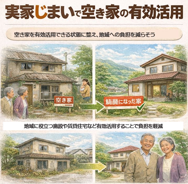 実家をどう活用するかは、現在の家族の状況や将来的な計画によります。実家を売却して経済的な負担を軽減する選択肢もありますし、賃貸に出して収益を得ることも可能です。また、空き家の状態で管理を続ける場合には、専門の管理業者に依頼することで手間を省くことができます。ただし、空き家問題を回避するためには、物件の用途を早めに決め、適切な対応を取ることが重要です。
