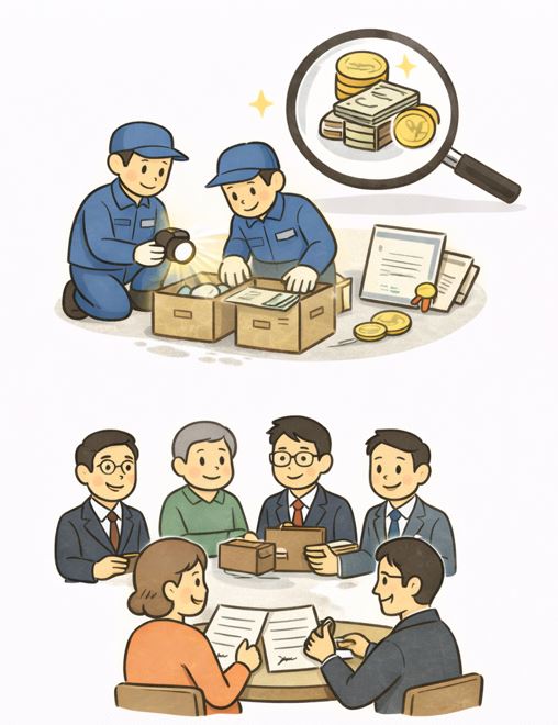 遺産分割協議をスムーズに進めるための大前提は、「相続財産の全容が明らかになっていること」です。銀行預金や不動産だけでなく、遺品整理の過程で初めて見つかる財産が意外と多いのです。