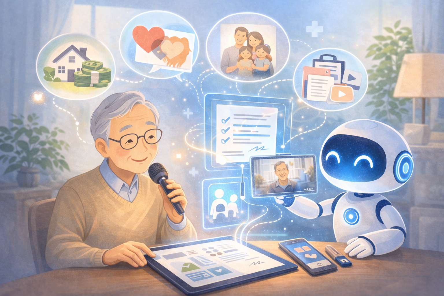AIは私たちの生活に密接に関わり、より一人ひとりの状況や希望に寄り添った支援を提供することが可能になっています。例えば、終活においてはAIが個別化されたライフプランを提案するだけでなく、本人の価値観や記憶を基にした「未来の物語」をともに描いていくこともできます。さらに、AIによるデジタル遺言書やエンディングブックの作成支援など、人生をより深く整理し記録する手助けも進んでいます。こうした技術は、ただ人生を終わらせるための準備ではなく、新たな生き方や家族との関係性を築く機会をもたらしているのです。