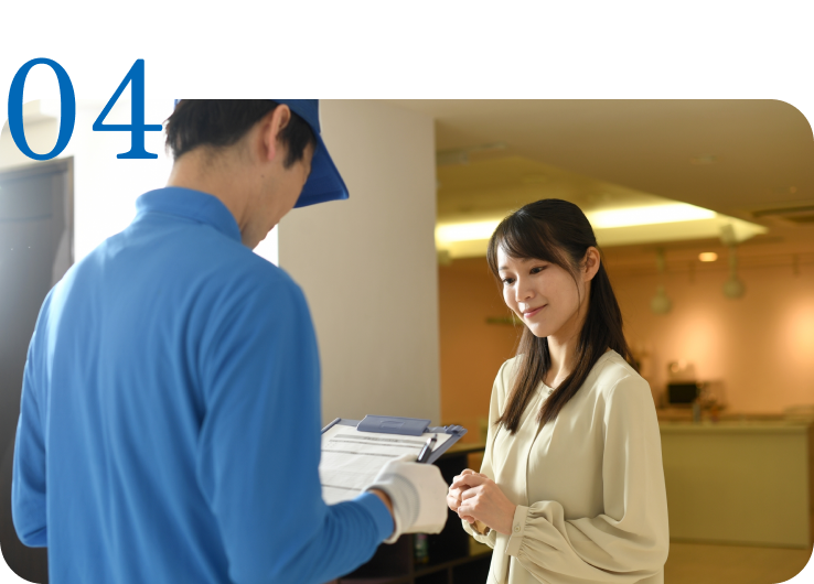 作業終了後、きれいになったお部屋のご確認と作業内容をお伝えさせていただきます。気になることはなんでもご質問ください。