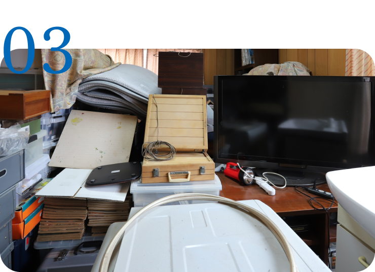 まずは動線上のものの片付けからスタートし、ご依頼いただいたものを全て片付けます。万一追加の不用品がある場合はお知らせください。内容により再度お見積もりをさせていただきます。貴重品と思われるものが出てきた場合は仕分けを行い、お客様に要、不要の確認をしていただいてますのでご安心ください。